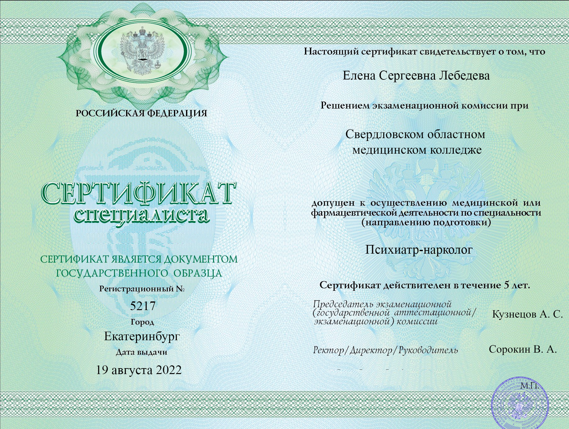 Елена Сергеевна Лебедева врач нарколог клиники доктора Стукаловой в Боре